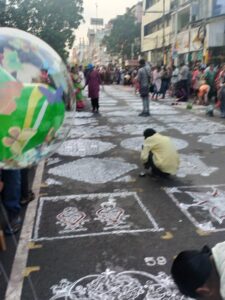 So much so, every January (barring the two when the Pandemic brought the world to a standstill) the streets adjoining the famous Kapaleeshwarar Temple in Chennai would have their annual Kolam festival. The busy street is cordoned-off for two days for those participants to create their kolams.