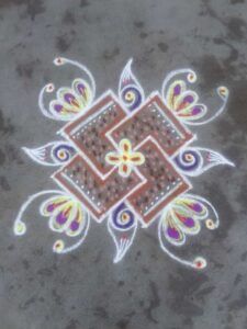 Creating a kolam can take anytime between a few minutes to few hours and it depends on the occasion they are made for. The cycle is repeated each morning thus depicting the continuity and the designs show innovation and creativity. I remember reading somewhere that kolams give a wide perspective to everyday life due to its diversity.